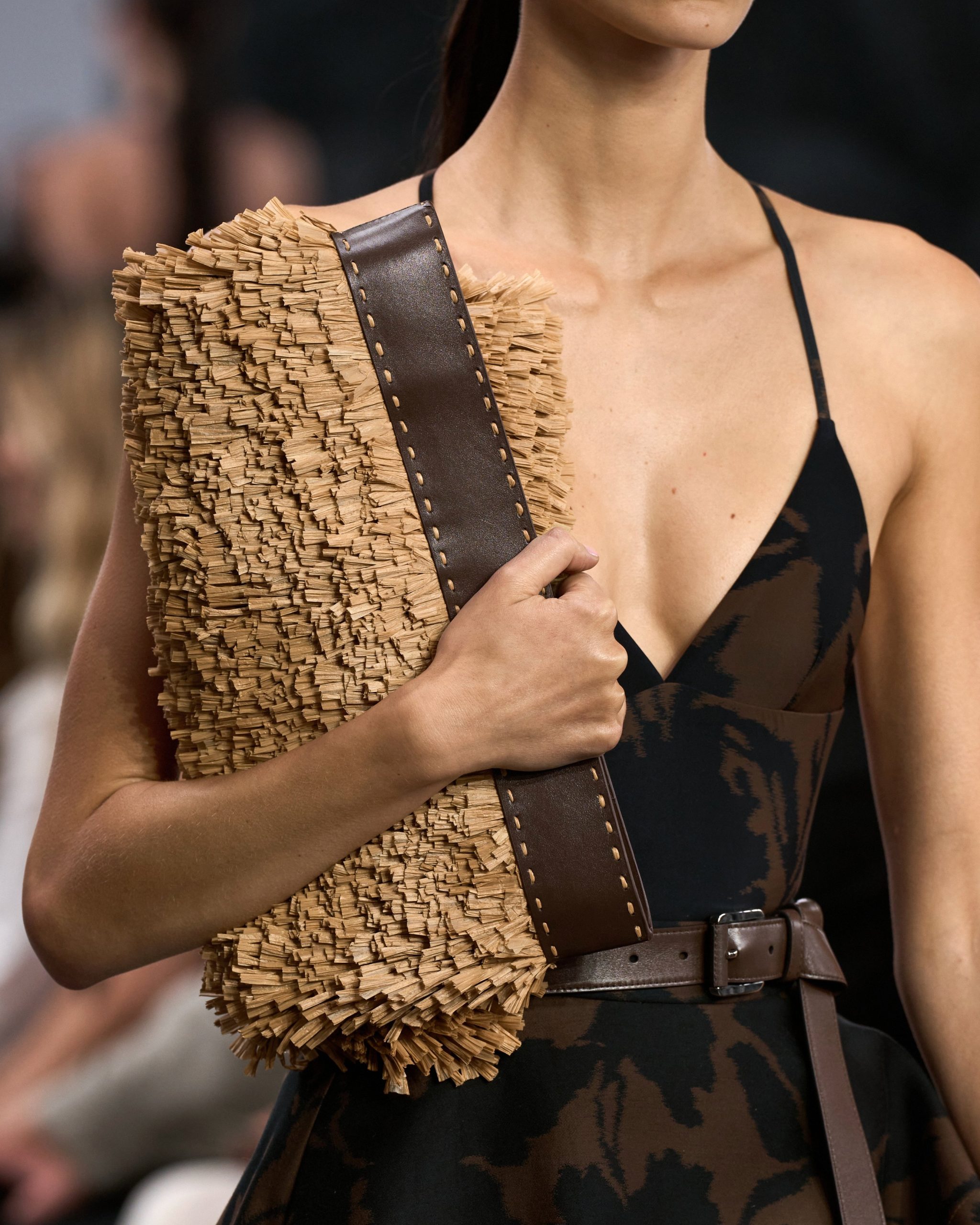 Footwear and accessories further reinforce the collection’s theme, featuring sculpted heels, flat fisherman sandals, woven leather bags, artisanal tassels, and braided handles, focusing on meticulous craftsmanship throughout.